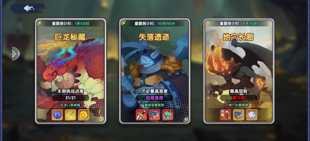 2.失落遗迹:三天刷新一次,一期有三次机会,可以选择不保存伤害,看好结束时间,可以最后一天打(别忘了打),合理搭配角色尽可能打高伤害,难度越高奖励越好,每次击杀可以解锁下一个难度。需要频繁拆装备给不同角色来达到伤害最大化。