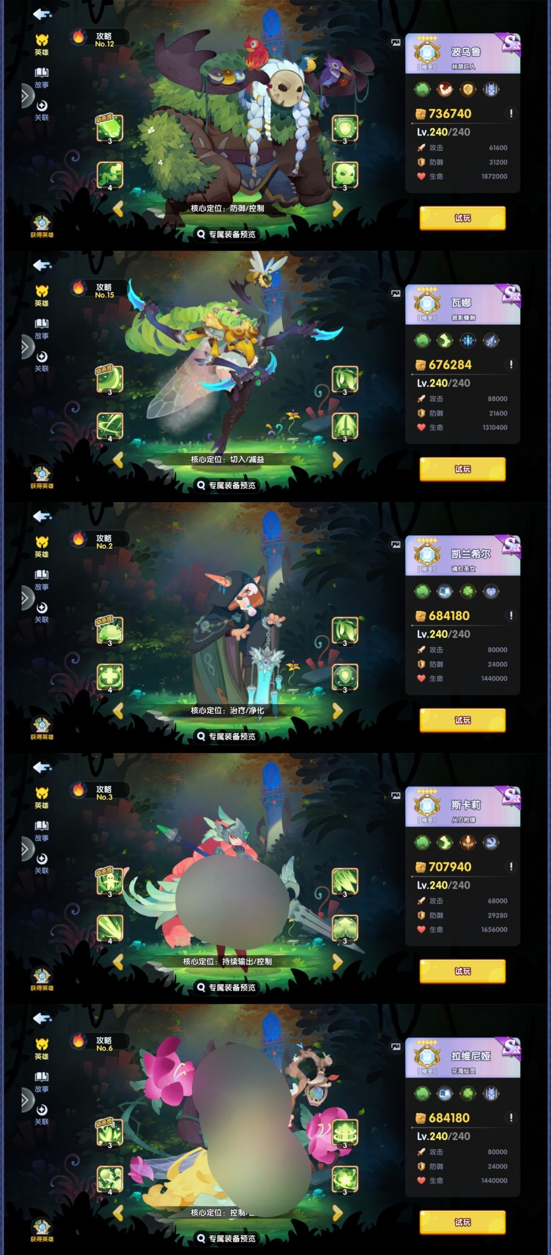 ♥关于前面为什么说可以用花木兰和暗弓装备,这是因为我们会全力培养花木兰,她装备是最好的,可以给同为技巧型英雄带上用来爬阵营塔和拯救村庄以及打副本,当然,如果你是超级氪佬能给每个角色一套装备当我没说。这样的话可以用木兰的装备给四系角色,提升很大,就是频繁拆装有点累。