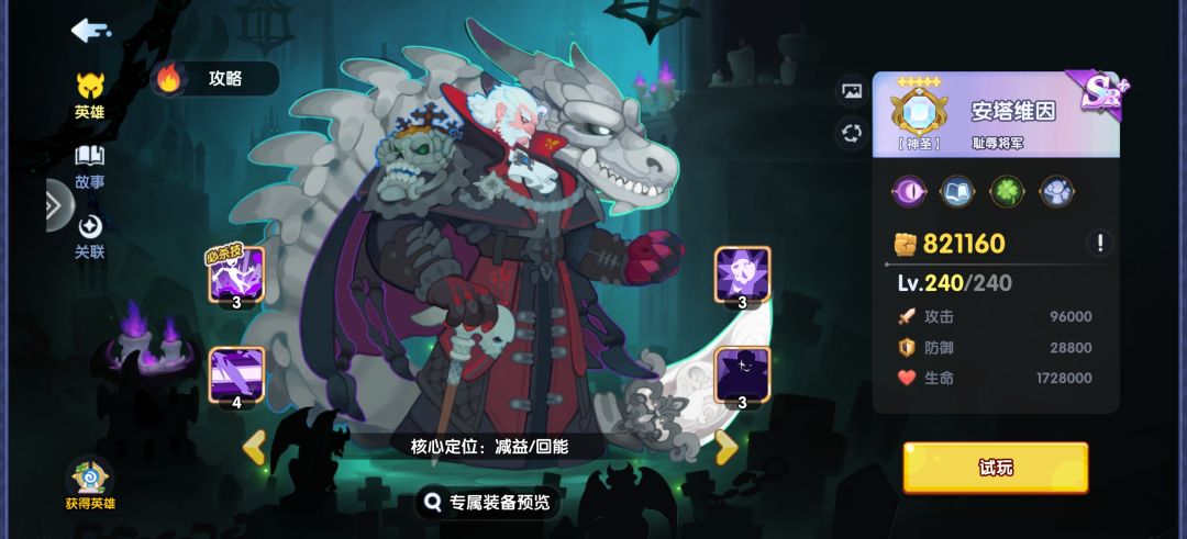 4.赛芙努(蛇女):可以给后排挂免伤和给土系角色增加伤害加成,比较适配兔子,纷争活动需要养成到传说。