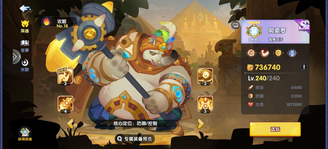 至于用哪几个符石,建议直接看英雄自带攻略里其他大佬玩家的搭配。主属性第一条是固定的,第二条看运气。副属性升级符石可以开,也要看运气。