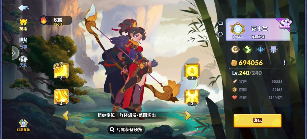●花木兰比较容易获得,而且强度很高,建议萌新就冲着花木兰搞,氪金也是同理(基金最值),包括装备也是优先花木兰,前期推图也是以花木兰为核心,组成花木兰+四个挂件阵容。四个挂件比较推荐四土(缺点是费狗粮)。