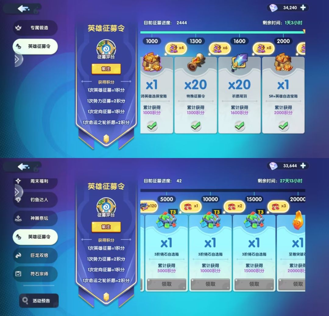 ♥切记钻不要乱用,只给花木兰祈愿,然后偶尔会有消耗钻活动,建议加群多问问,每个月都有消耗券的活动(第一个月2k,第二个月2w,其中特殊招募和光暗一抽2积分)。
