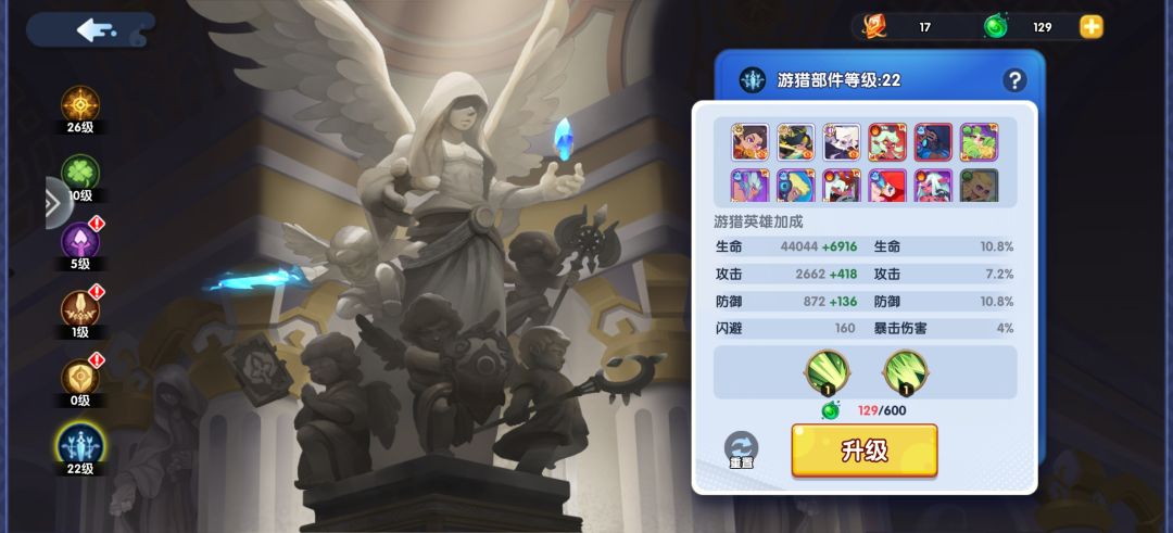 这个以游侠升级为主,如果卡级了就说明第一个神像等级不够了,神像等级需要给角色提升品质给的材料。