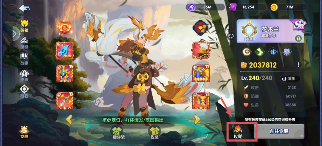 装备没什么好说的,以木兰的为主,可以放心升级红以下的装备因为后面可以吃掉(不过浪费金币),也不用担心金币不够,因为给装备升级的经验会很缺。