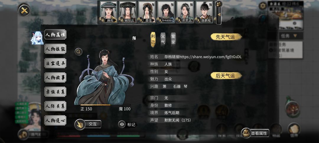 遨瑶立绘南梁正常属性开局存档分享