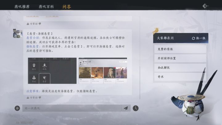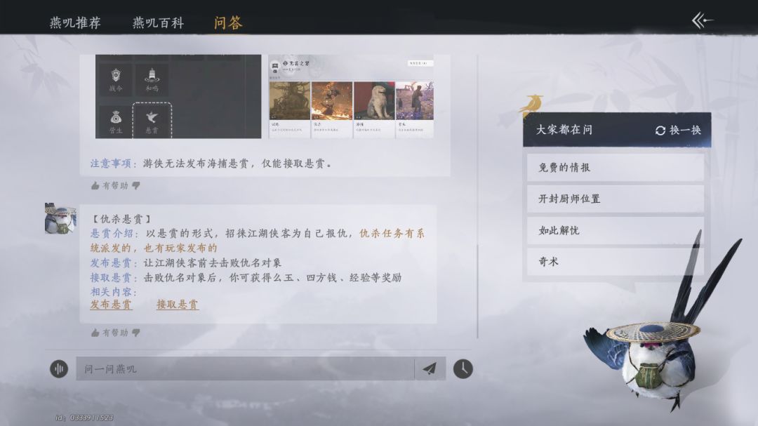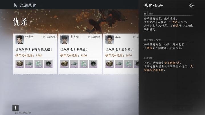 一,由玩家发布,消耗长鸣珠(最少消费6元),可以将指定玩家悬赏由侠士出手,完成获得长鸣玉;