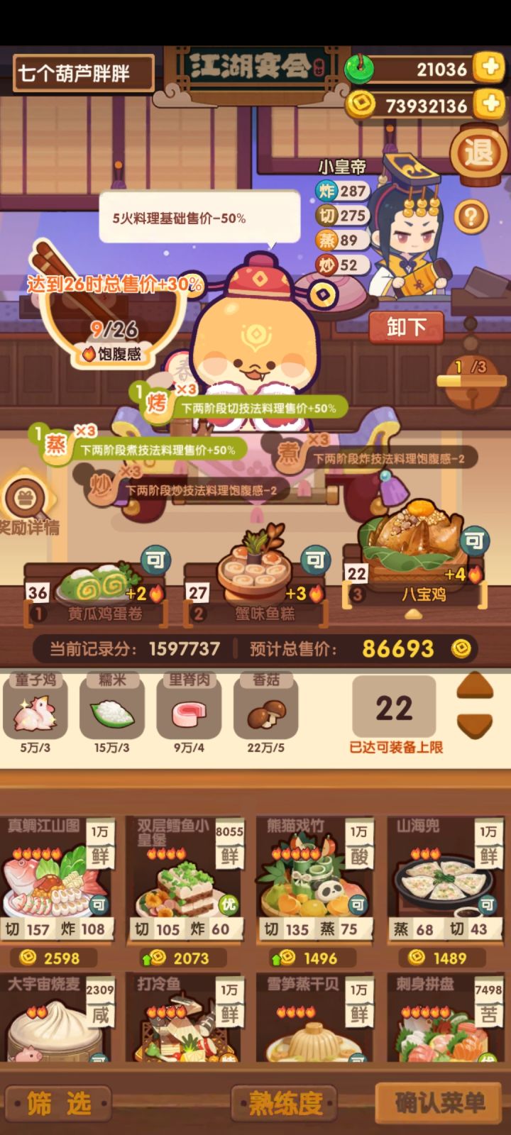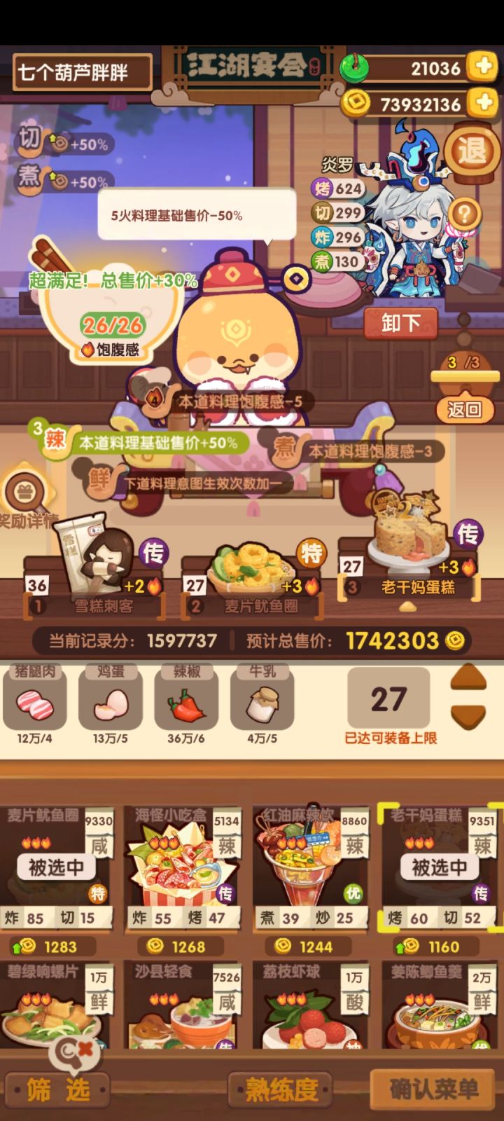 如图,后面两个用了新手池厨具,有一点点的基础修炼。