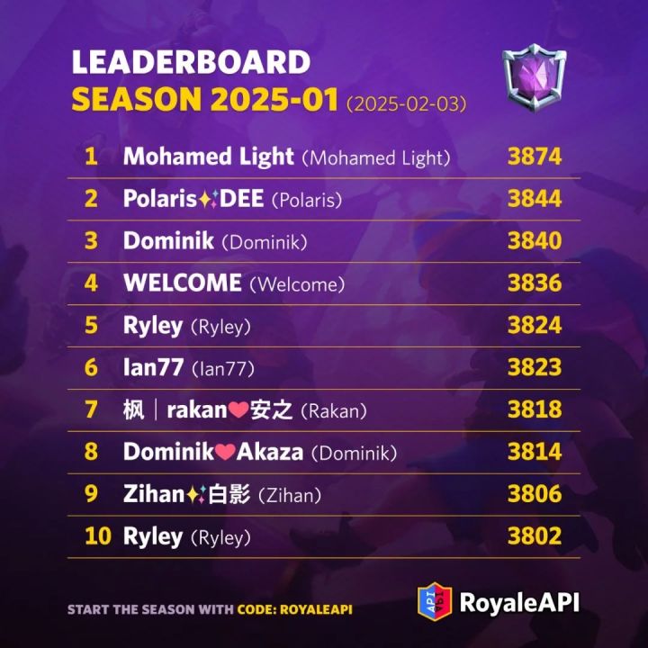 皇室战争2025年1月第67赛季排行榜卡组统计