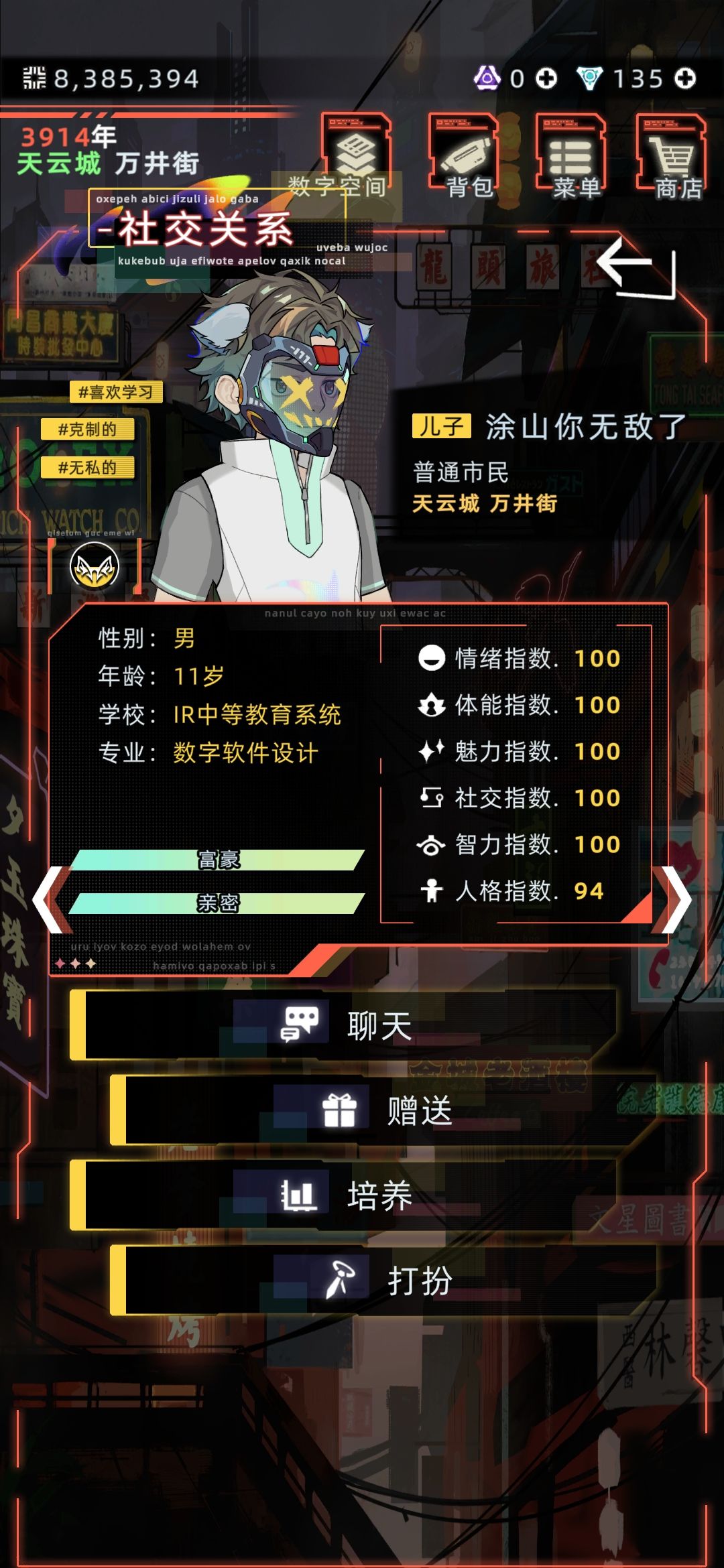 如图启动天赋重心,结果max传统都没起到作用,孩子们的属性面板也都是100,换了亲情和财富的重心,才有天赋重心的效果是怎么回事…bug吗