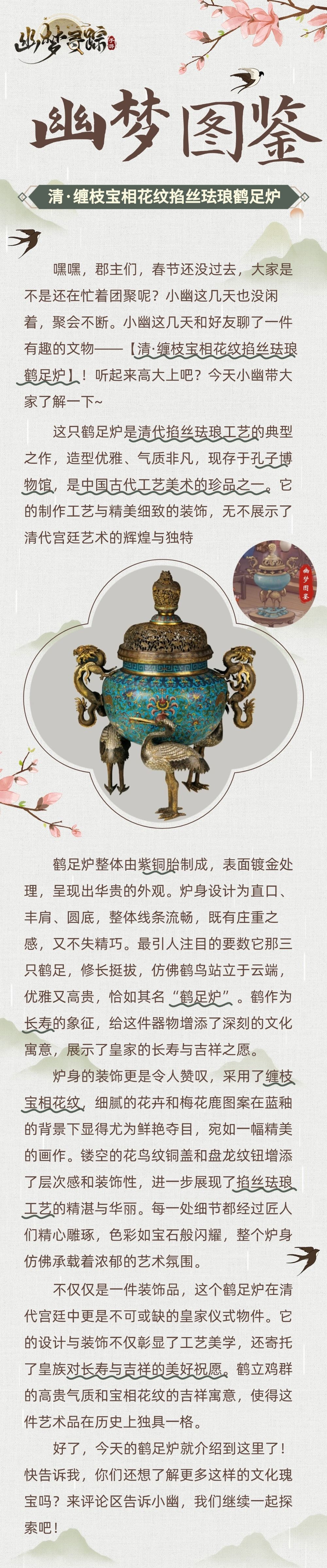 幽梦图鉴|清·缠枝宝相花纹掐丝珐琅鹤足炉