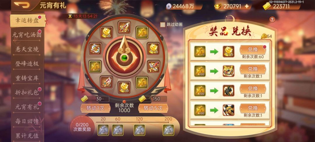 累计转动仙轮达成指定次数可以获取额外奖励。