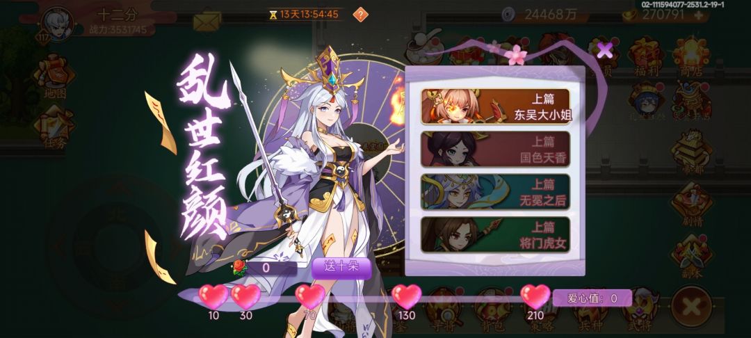 活动内容:活动期间,完成乱世红颜剧情副本挑战收集玫瑰花,赠送玫瑰花获取爱心值领取奖励。(活动结束时未使用的道具“玫瑰花”将会被过期清除)