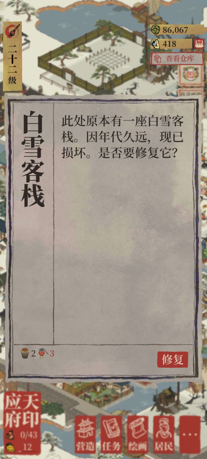 江南百景图 白雪客栈怎么修复
