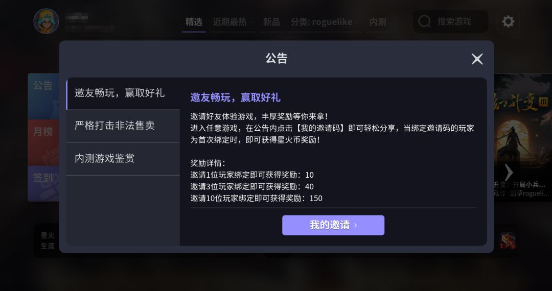 即日起邀请好友游玩星火对战平台,绑定您的邀请码即可领取丰厚星火币奖励!