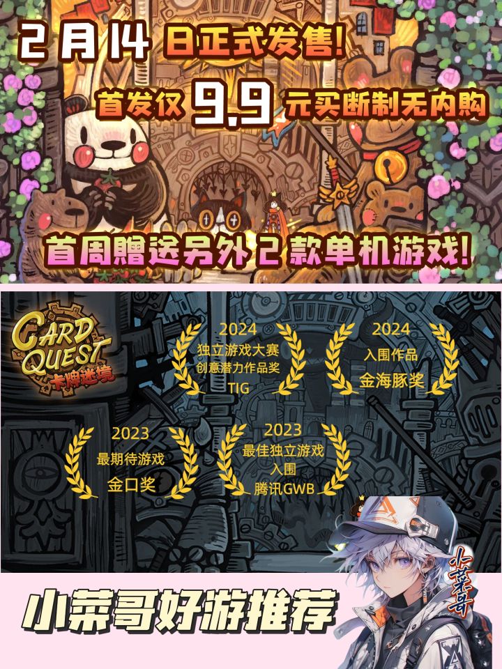 手绘风猫咪魔性单机游戏《卡牌迷境》定档啦!!!