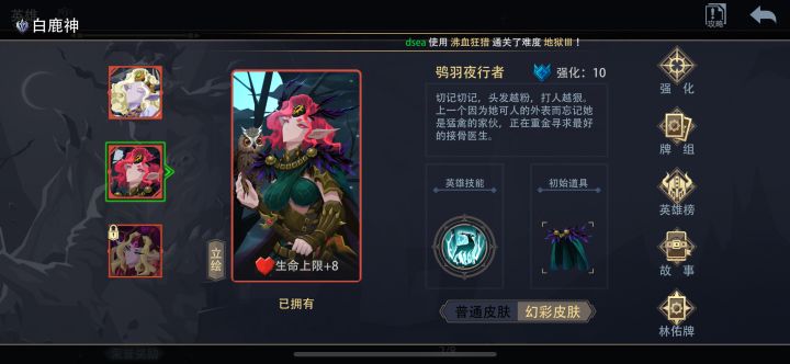 弩和权杖也可以删了 皮肤是质变 心灵是核心 我是拿了弹弓无限套娃直接给对面打死了但是遇见会变身的boss可能就需要第二回合 如果不要会给对面造成伤害的卡就用衍生出来的白露 一直加攻击直到一下给对面顶死为止(有点费手) 理论上是对面没有任何出手的机会 神卡还是好用的