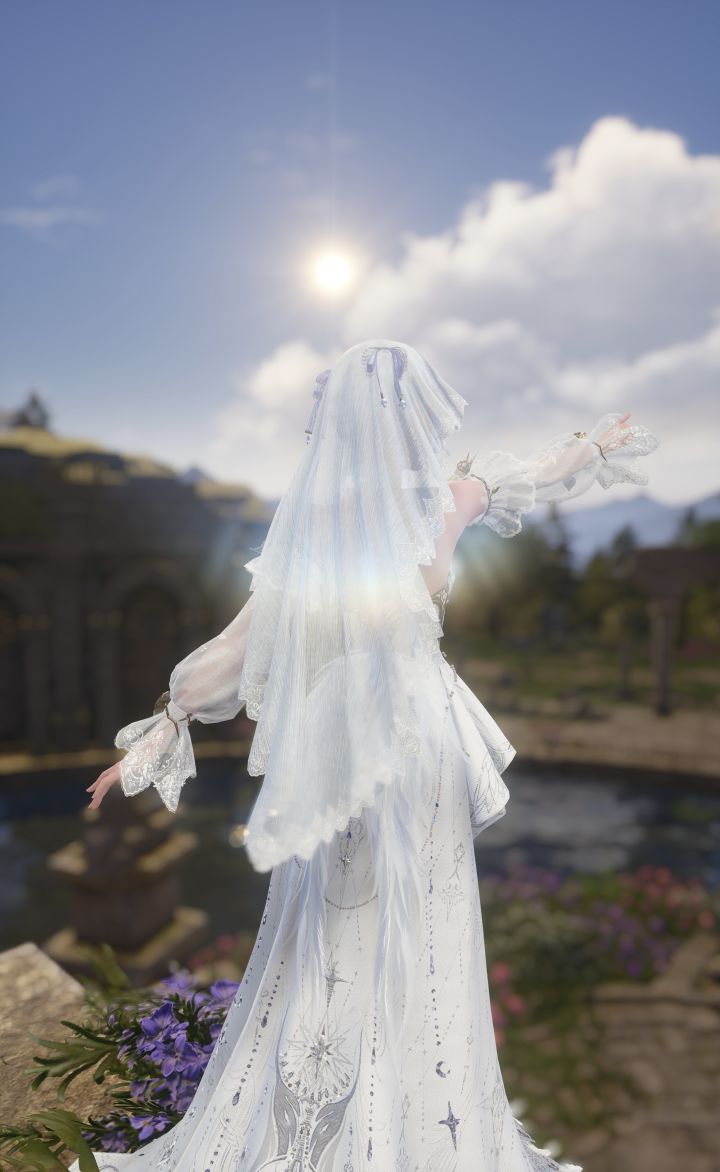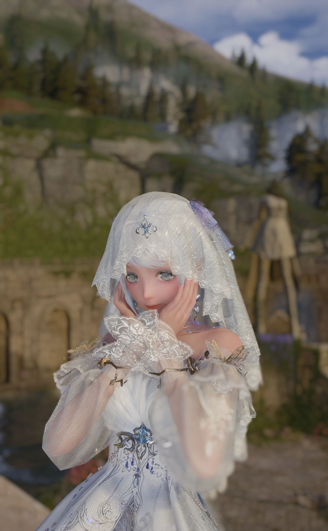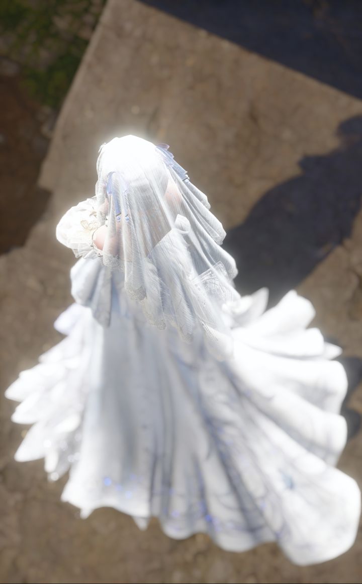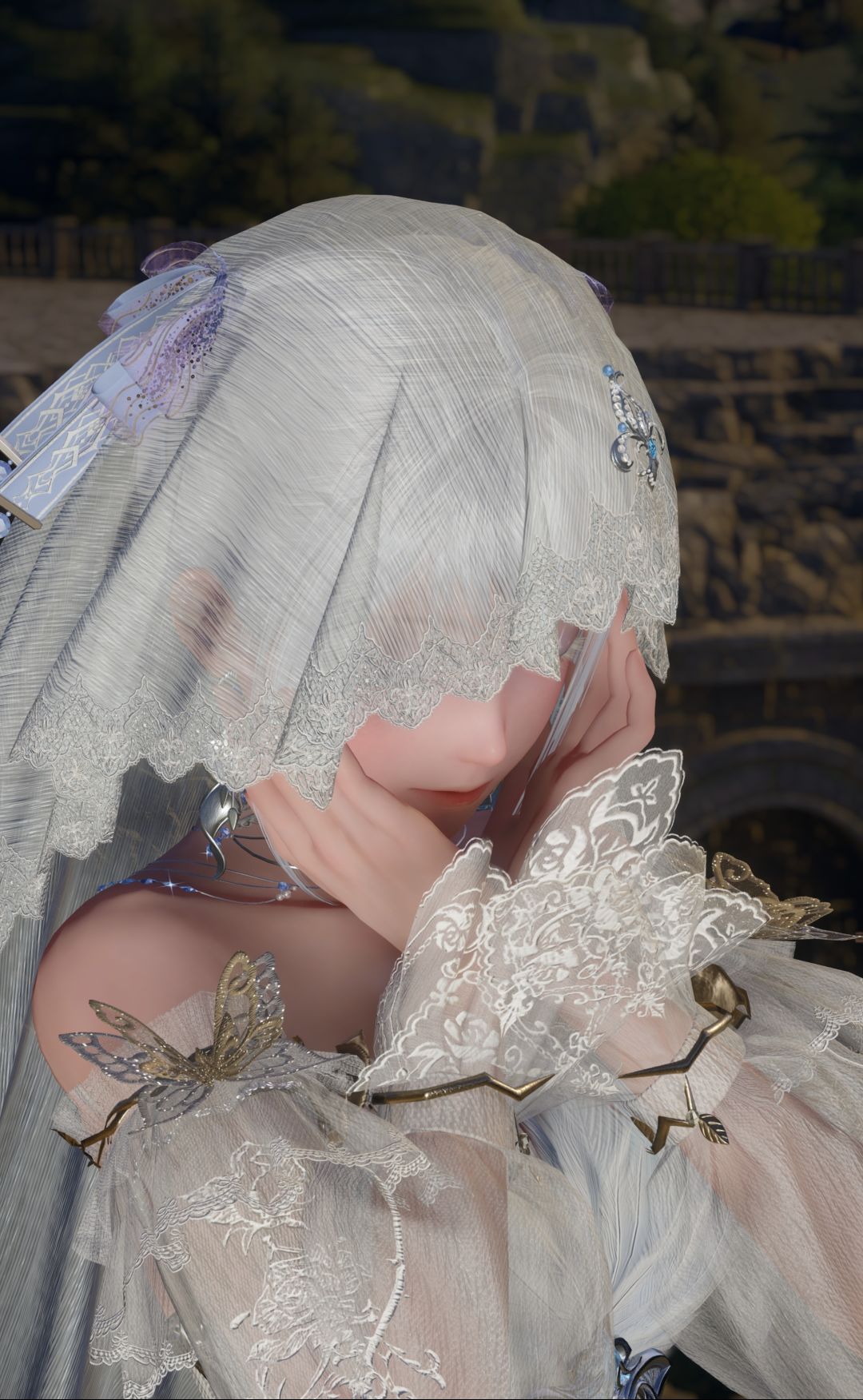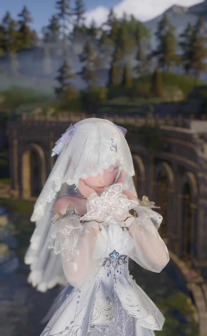 银夜莺裙子和湖女头纱搭一起,拍着特别像婚纱