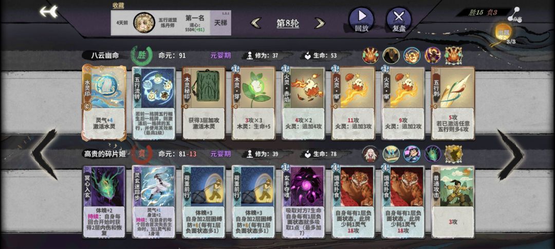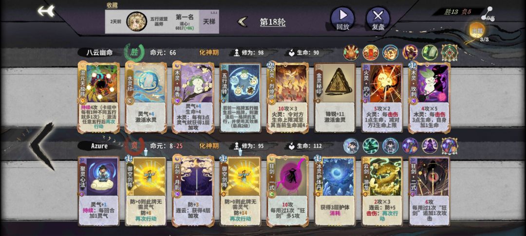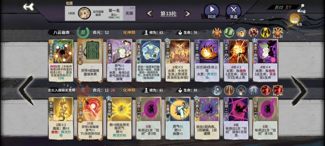 最后是画副职与丹副职的区别,两者都很优秀,简单来说就是丹的上限更高,靠着修为丹抢一些角色的先手,有飞云丹做对策(打高防卡组)