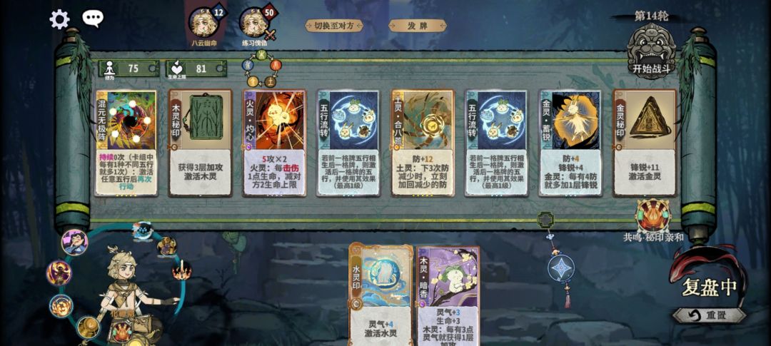 过度要求:练气卡五轮,通过画副职的练笔压缩牌库,从而得到以下一直过渡到化神的牌组,即满级的水灵印,和两张二级的芽和二级的窜。
