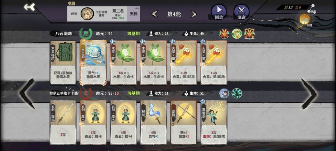 当然,也有非的时候,这局到死没有混元,但靠着运笔如飞的在动,复活和优质多段牌依然能打,硬生生苟到第二