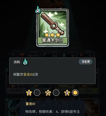 也可以为新手玩家提供不错的输出。职业卡片“瞄准”、“照明弹”、“拙劣瞄准”提供的精准也可以加强核心专属卡牌“普通木剑”的攻击。