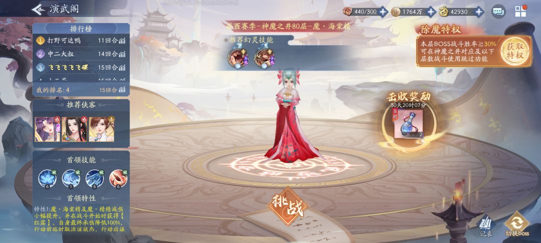 1.氪佬打法:柳梦璃速度必须大于boss,幻灵释放技能顺序猫1鹿2