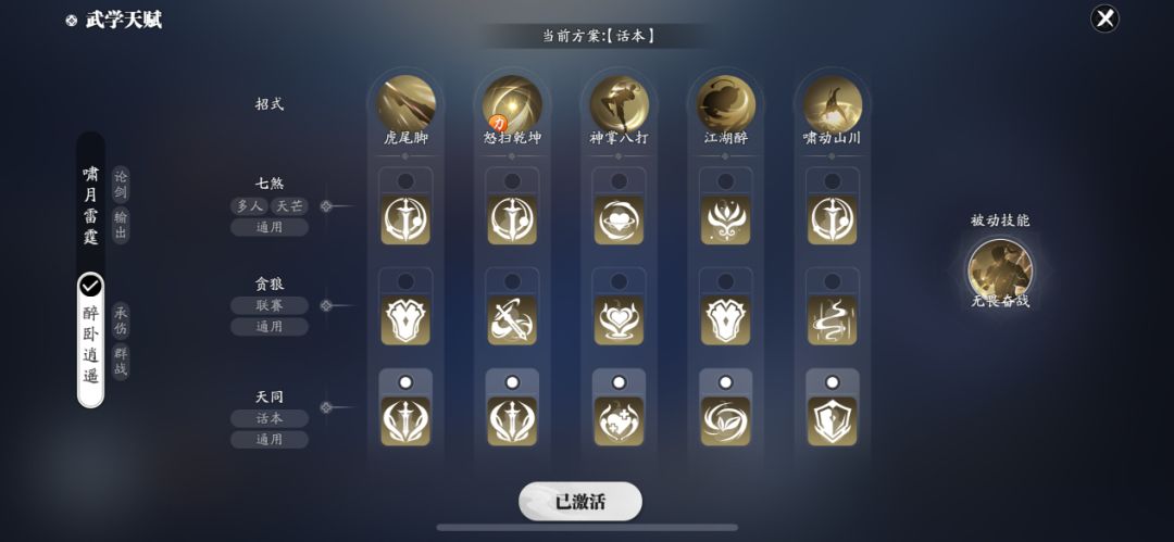 技能套路:醉卧逍遥