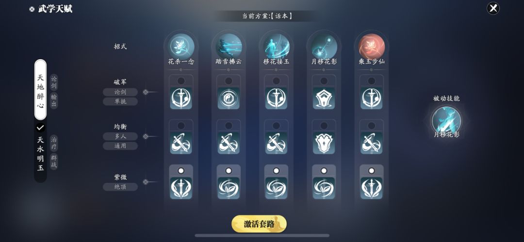 技能套路:天地醉心