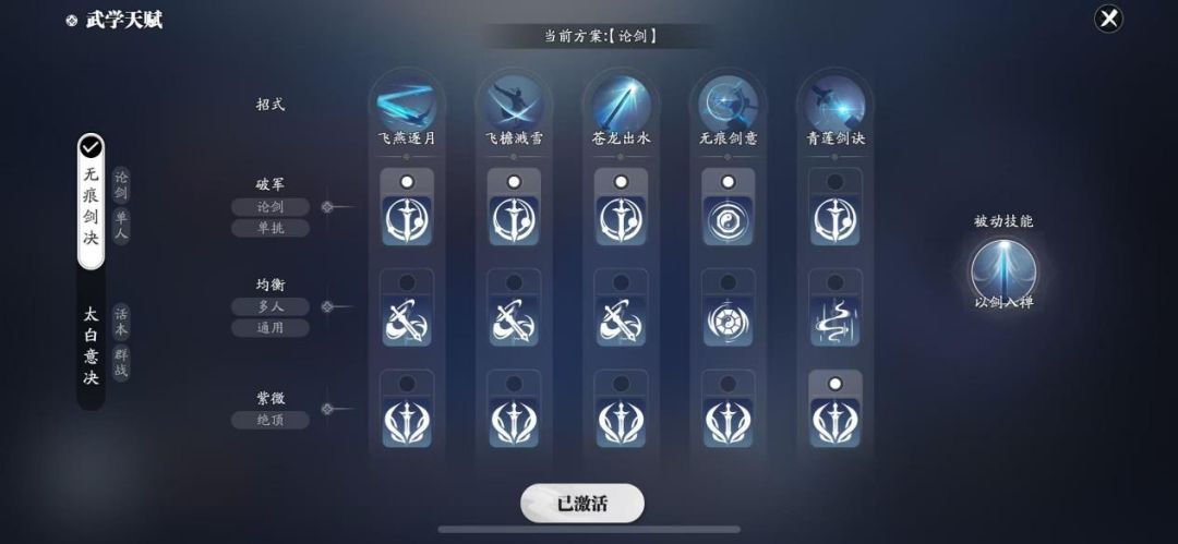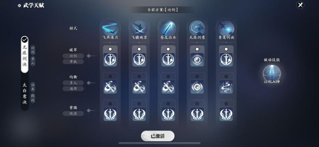 技能套路:无痕剑决