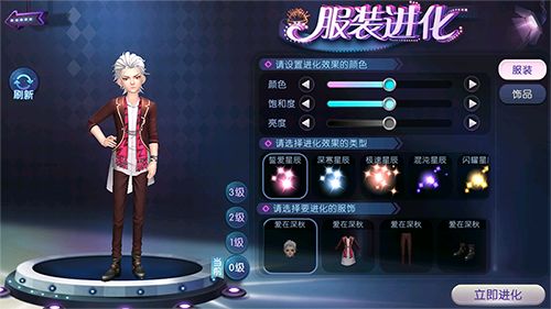 男款【爱在深秋】采用了拖尾西装搭配修身长裤,英姿帅气,单身插腰、昂首站立的姿势更是器宇轩昂。本次【爱在深秋】的新表情瞳色为夕阳色系列,男生新表情的瞳色为落日橙,冷酷严肃;女生新表情的瞳色为晚霞青,柔情似水。