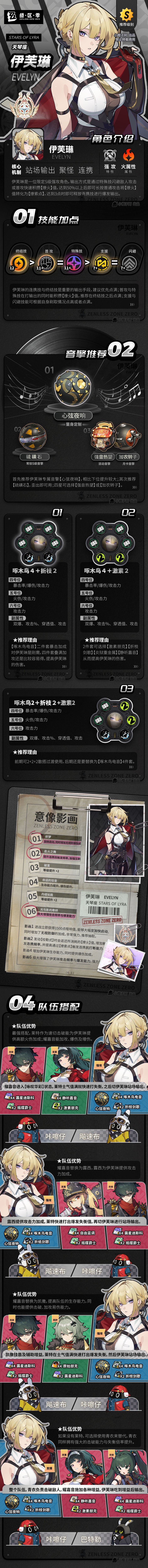 ——火属性站场强攻代理人。伊芙琳作为全新的S级火属性强攻代理人,在队伍中的定位为站场输出角色;