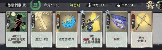 猫剑共鸣,不是很适用琴猫,对我来说,猫剑共鸣的意义有三点,一是提升决赛轮次的抢修空间,牌卖完不至于打出三峰猫剑,可以抢屠奎、花花、陆剑心的修;二是在2牌8剑意的时候,使用剑意+剑意+一级激荡+7段猫剑,打出4动杀;三是在牌比较顺的时候,可以8轮上元婴(点猫魂,8轮上元婴可以摆6张牌)。