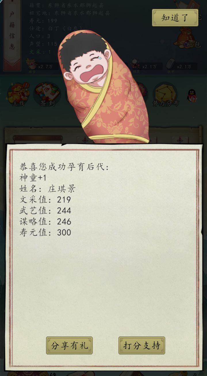 恭喜您成功孕育后代: