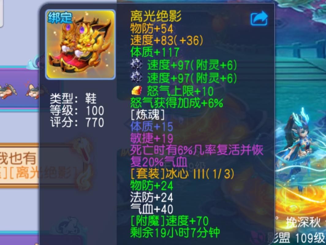 单加体质117,能够带给我们足够的气血加成,辅助治疗职业用起来可以说是满满的安全感!相比于来说,体质的装备珍稀度不算特别高,但是如今出现了各属性的称号,那么这件装备也是争夺最高气血的顶尖利器!这件装备基础属性上物防达到了全满速度方面距离全满低了2点,鱼和熊掌不可兼得,整体来讲已经是非常优秀的!