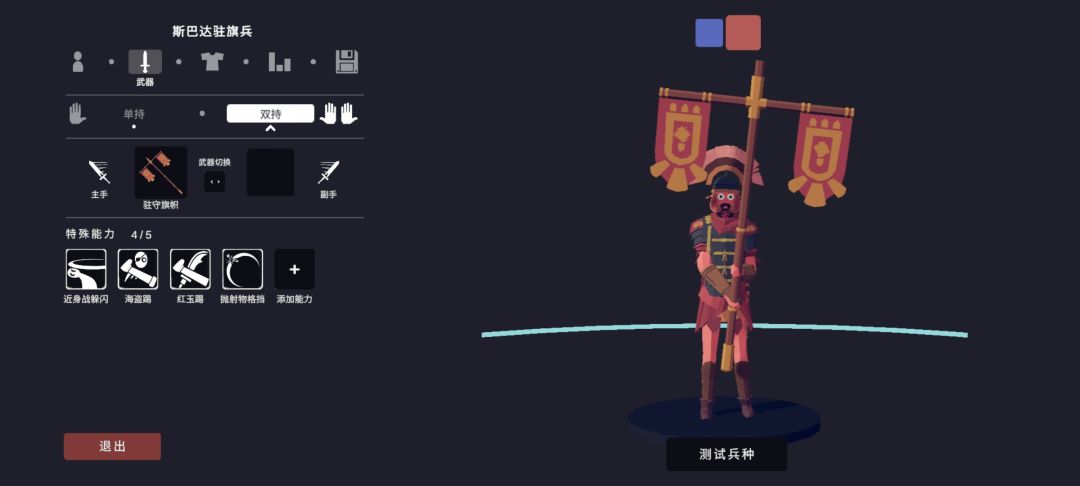 3.支援辅助兵兵种分为两种,分别是拥有召唤场外箭雨齐射能力的斯巴达支援兵以及行军布阵用的行旗兵和驻旗兵,行旗兵、驻旗兵顾名思义其能力是加速buff圈内单位的移动速度或者使其buff圈内的单位驻守原地,如同原版的冲锋旗手以及旗手。