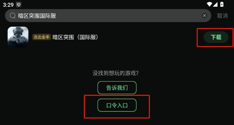 第二步:在奇游内搜索【暗区突围国际服】即可下载游戏,安装完毕后加速启动游戏即可~