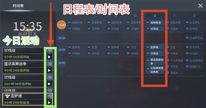 1.很多新玩家不去看日程表,活动开始后还找不到参加的入口,建议新玩家,多去留意日程表里面当日的活动,以及活动具体开始的时间;活动即将开始时,就点开▶这个图标进行参与。