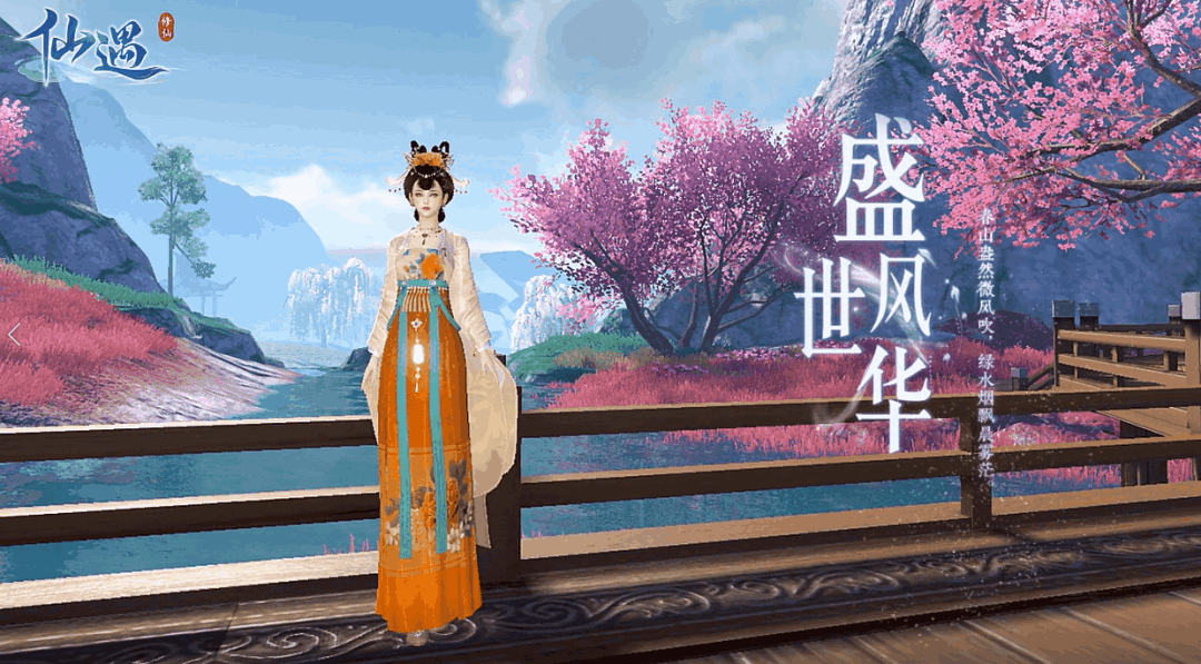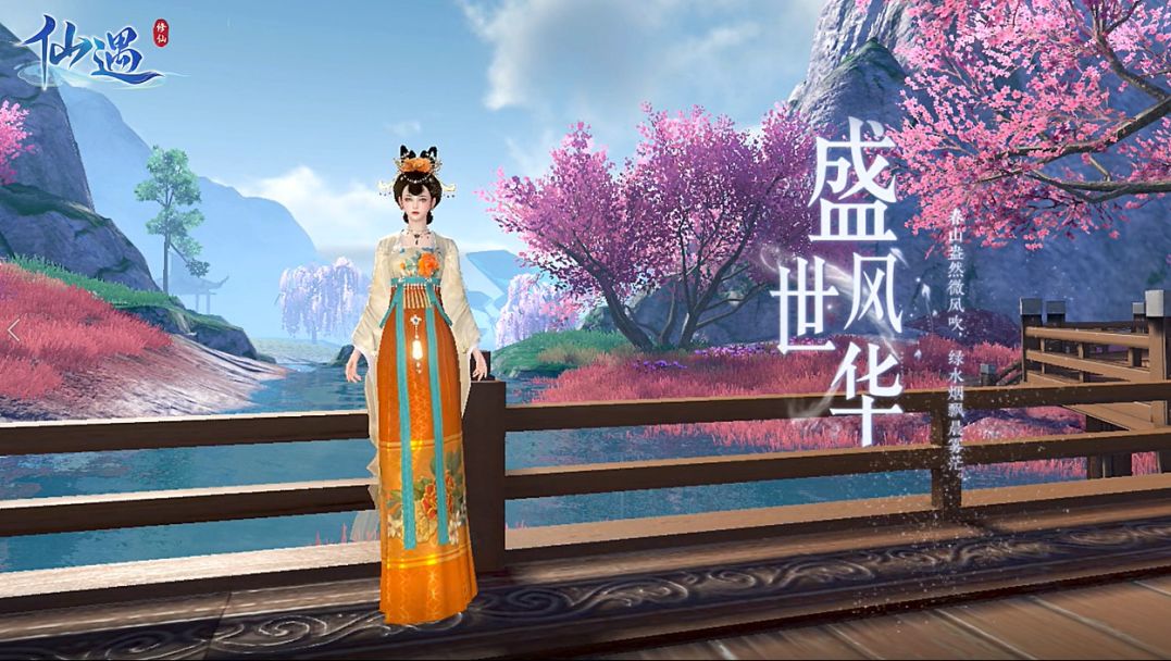 【盛世芳华】时装的剪裁既保留了古典汉服的优雅,又融入了现代设计的灵动。轻盈的纱质面料随风轻扬,仿佛花瓣在空中舞动,行走间自带仙气Buff,绝对是仙遇世界中最亮眼的存在!