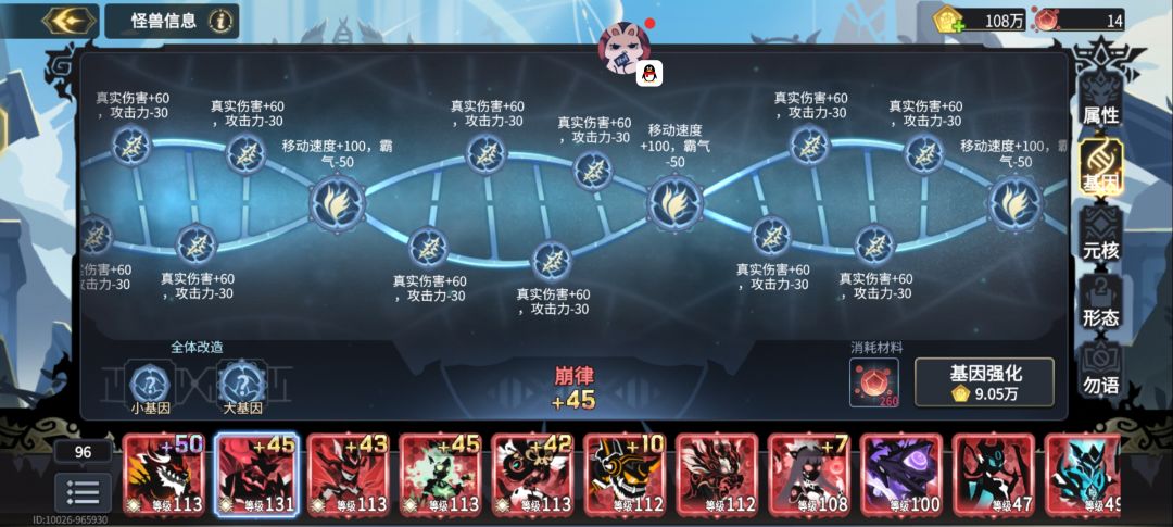 崩的话可以是攻击核也可以是真伤核只要你把攻击调到低于斧子就行基因加增伤减攻击大基因用减霸气增移速 崩律大帝很强你可以投入很多资源去养