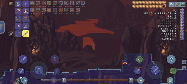 2、把地狱炸空并用方块挡住岩浆,但因为游戏模式是大师模式,所以打小怪会掉岩浆,照样可以丢向导娃娃。