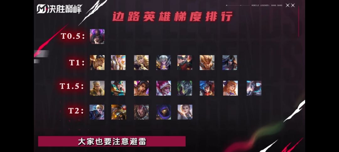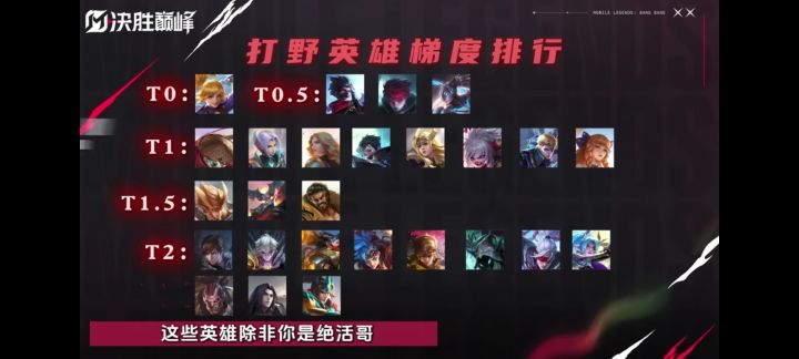 目前最有权威的英雄强度榜,图片来自决胜巅峰存心教练与多名职业选手.教练商量之后定的榜