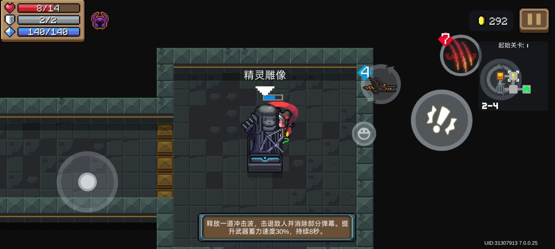 7.【精灵雕像】——释放一道冲击波,击退敌人并消除部分弹幕。提升武器蓄力速度30%,持续8秒。