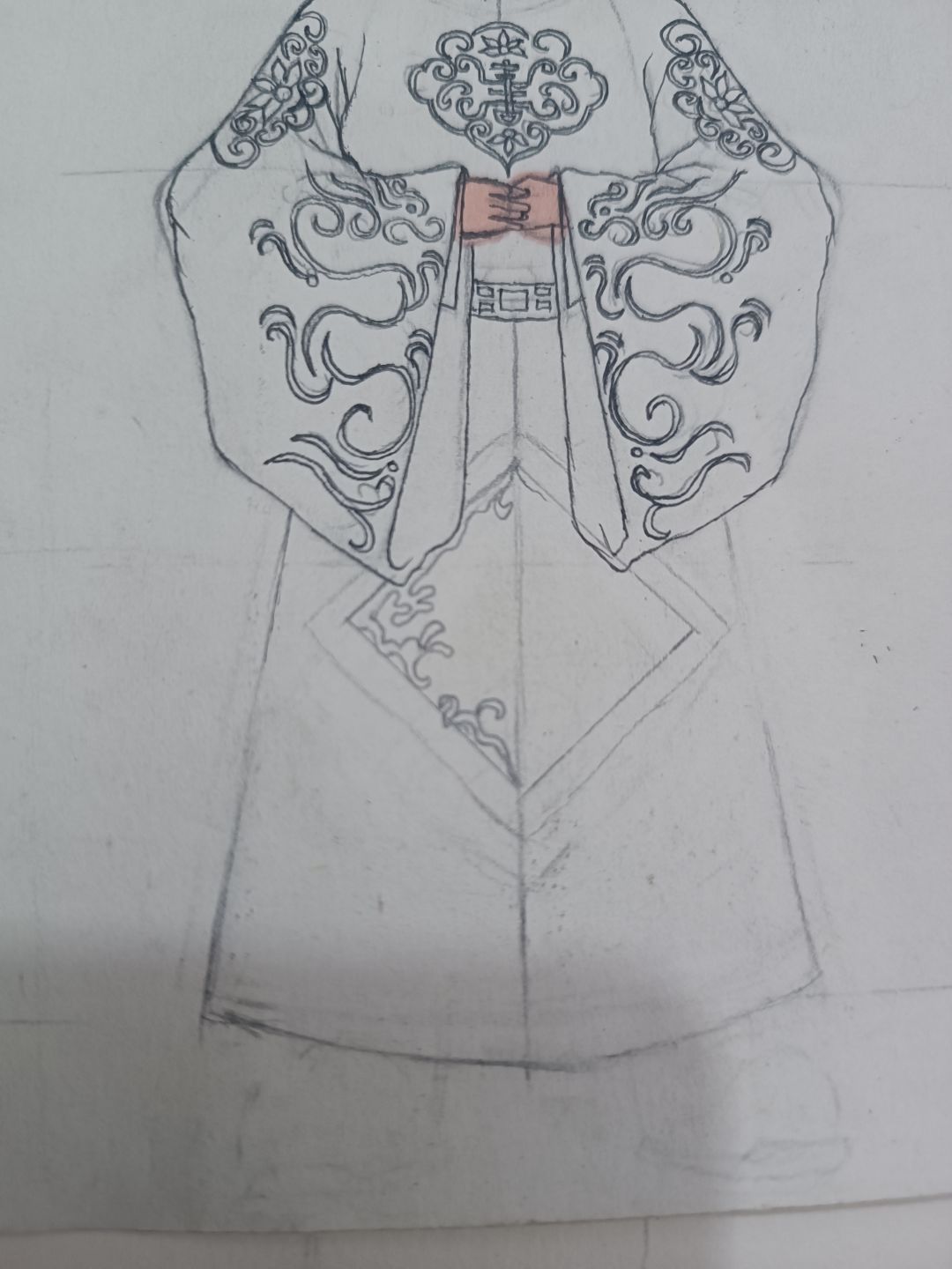 服装上面有非常多的传统金色云纹图案,极具辨识度,男为龙,女为凤,衣服颜色这次设计的红色,我觉得很喜庆,也许会有游戏里CP喜欢呢也说不定,当然,中国真正的凤冠霞帔是非常复杂的,这次设计的手稿很小张,用的马克笔填色的,非常不好涂渐变色,图案还有凤冠上很多颜色没有表现的很丰满,也尽力了,喜欢大家能喜欢这样非常传统的中式服饰,不防给我点个赞支持一下