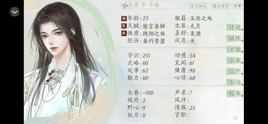 是入朝为官,封侯拜相,在朝堂上一展宏图,与各方势力周旋,体验权力争夺的波谲云诡?还是参加选秀,让子女进入后宫,成为宠妃,冠绝六宫,为家族赢得无上荣耀?亦或是从商立业、耕地务农,带领家族在民间打下一片天地?每一个选择都将决定你和家族的命运,你的故事由你自己书写。