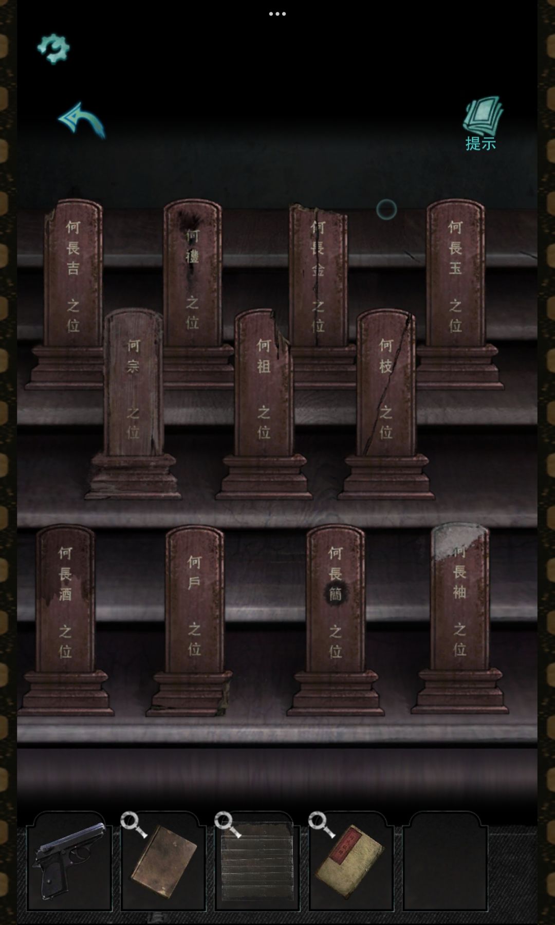 进入祠堂→点击左边桌子放上蜡烛过游戏获得【排位】(建议跳过)点击蒲团获得【磁针】回到天井放入水缸根据上红下白方向记住八卦图(随机生成),回到祠堂,点击蒲团打开机关获得【族谱】,火盆夹走灰烬玩拼图游戏使用胶带获得【一页纸】,回到天井点击天空记住线索,再回到祠堂放上排位,重新放排位进入密道(注意高能⚠️)