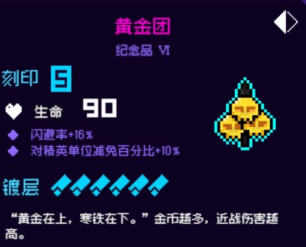 每25金币获取10%近战加成,至多300%,750金币才能吃满加成,比较困难