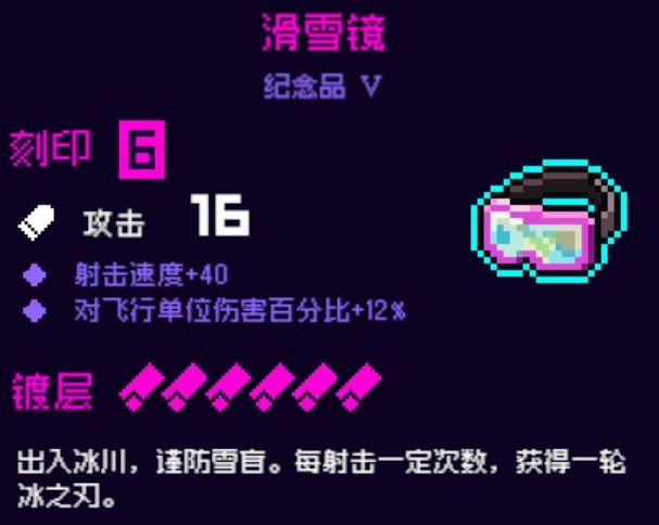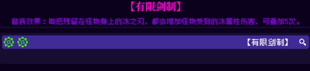 局内随便捡两件触发有限剑制套装效果就好,因为该套装效果为冰属性易伤,然后滑雪镜和黑色小刀其触发冰之刃频率本身就很高,而且只需要5把剑(也就是一轮冰之刃)就能吃满冰属性易伤,所以没必要特意镀层