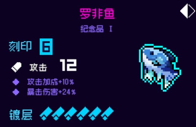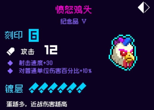 受伤加伤,越打越强,每次受伤增伤40%,至多200%,可惜该加成只在当前房间生效,但是条件简单,比较推荐