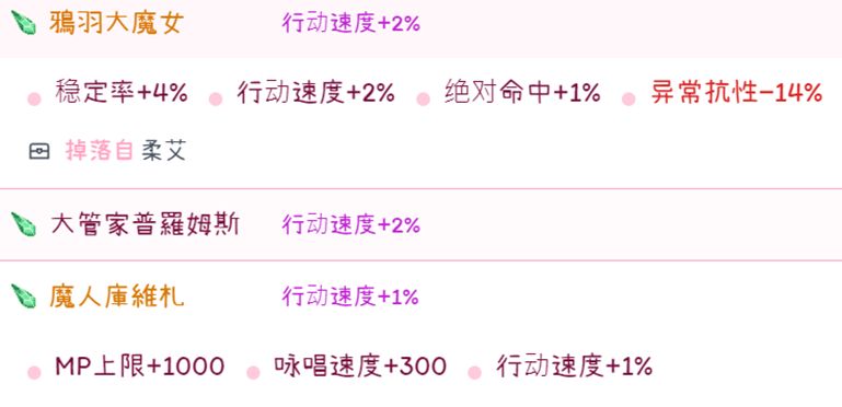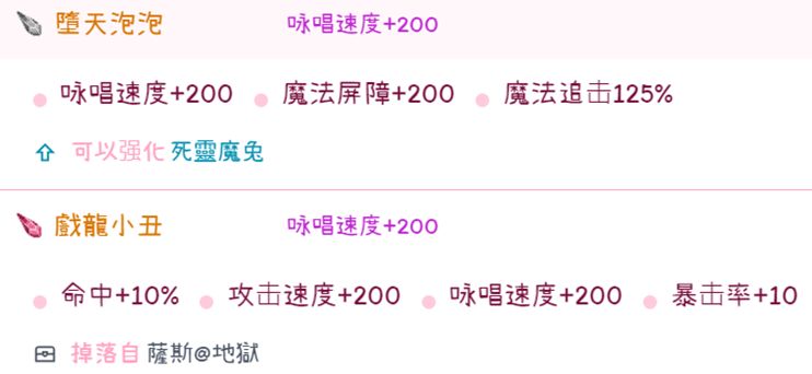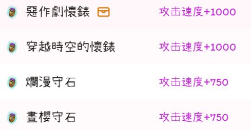 (可用属性:攻击速度,行动速度%,咏唱速度,获得EXP%等,1%行速可看作180攻速)