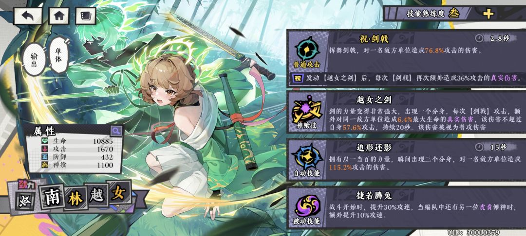 女主茶经提升普攻队上限,竞速时能更快打出输出。